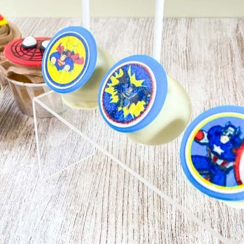 Deliciosas bolas de bizcocho bañadas en chocolate y decoradas con papel comestible.