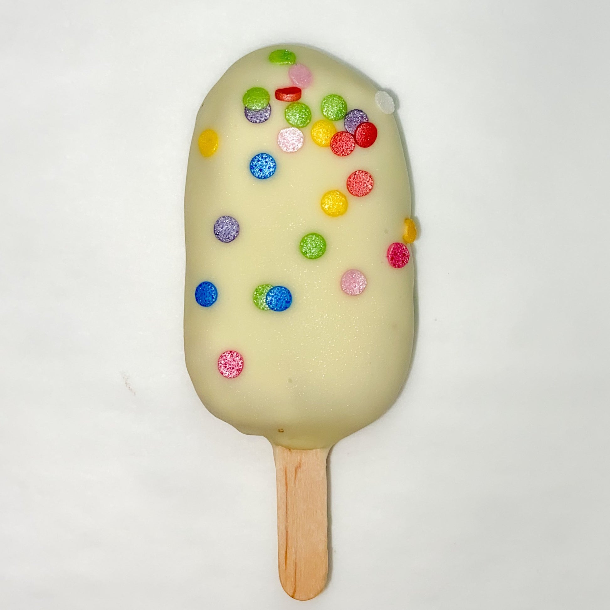 Mezcla de bizcocho casero con nuestra deliciosa Swiss merengue buttercream, cubierto por una capa de chocolate en forma de mini-magnums y decorados con sprinkles.