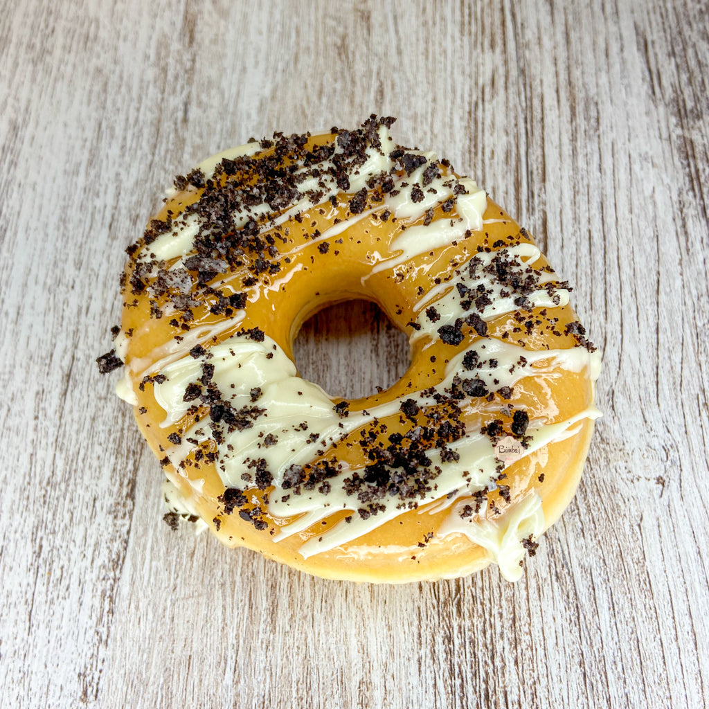 *1 und Donut con hilos de chocolate blanco con topping de oreo
