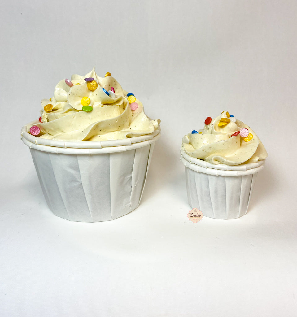 Los cupcakes tienen un diámetro de 5.5 cm de base y unos 50gr aprox de bizcocho.