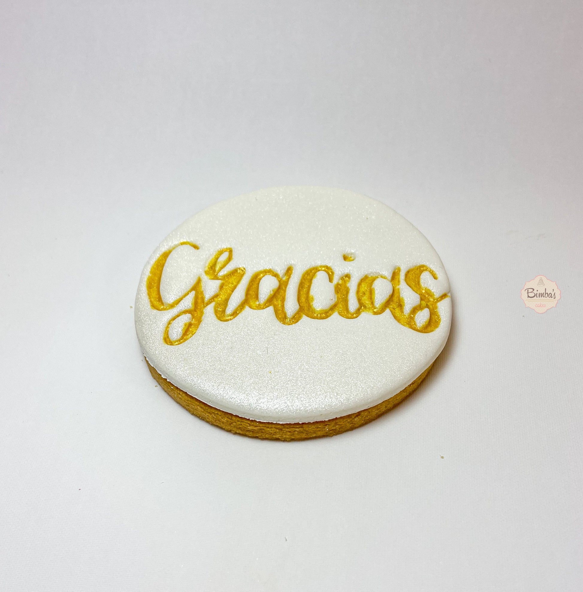 Galleta a base de mantequilla, con sabor a vainilla, decorada con fondant y pintada a mano.