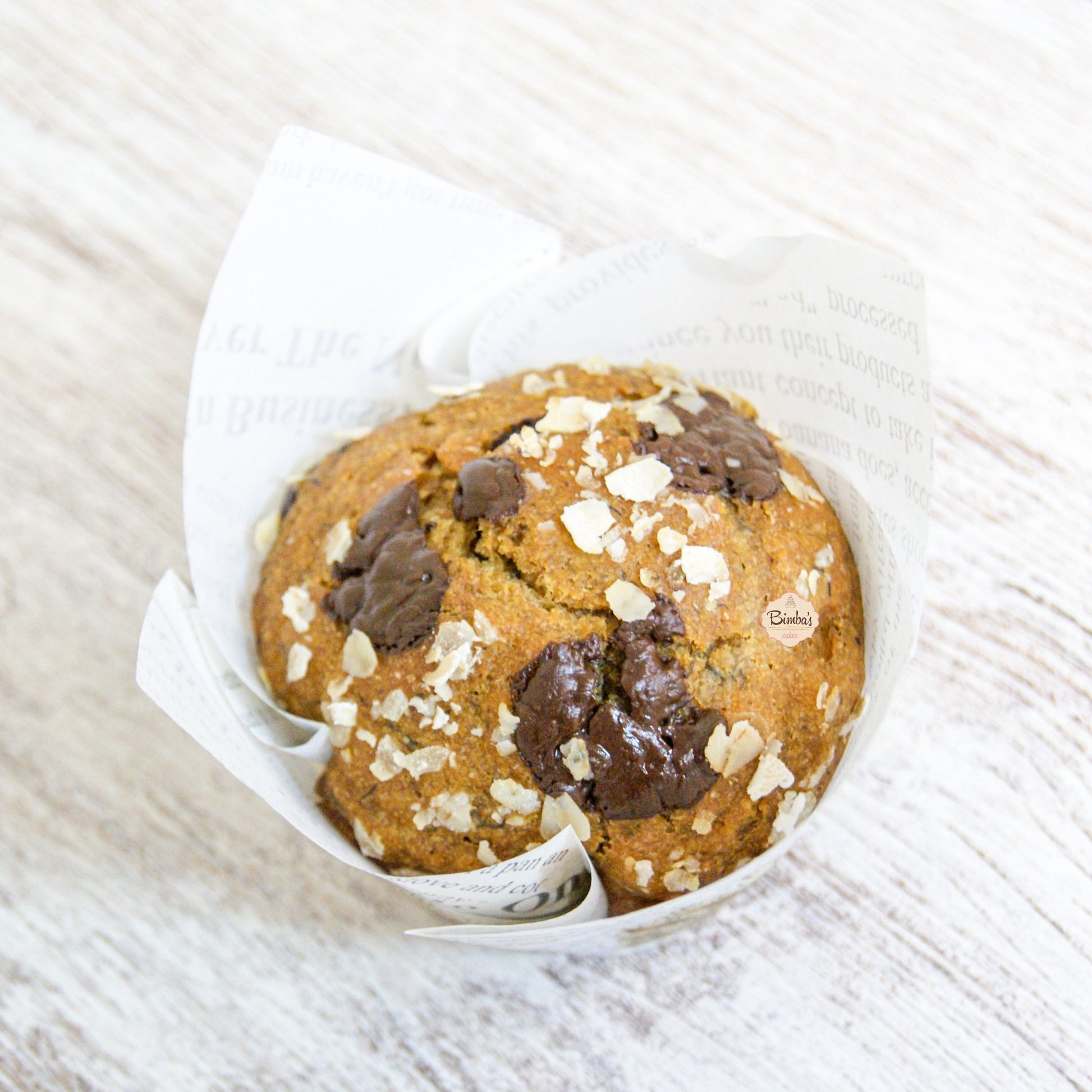 Similar en forma a una magadalena, pero más esponjosa a base de plátano maduro con pepitas de chocolate de primera calidad, elaboradas con productos de origen vegetal