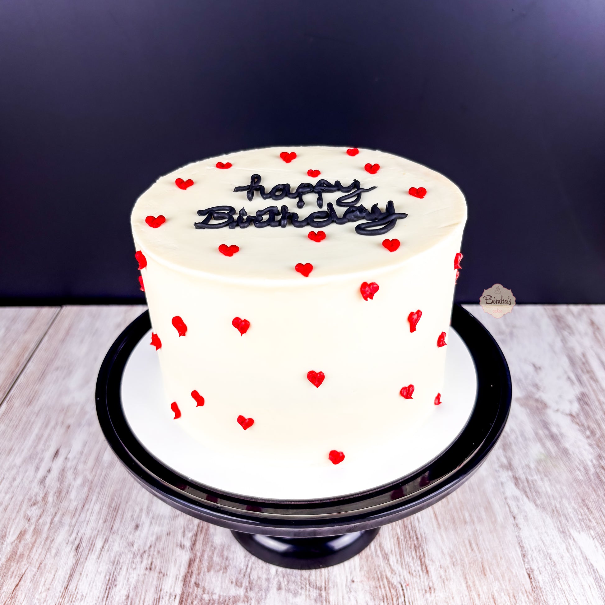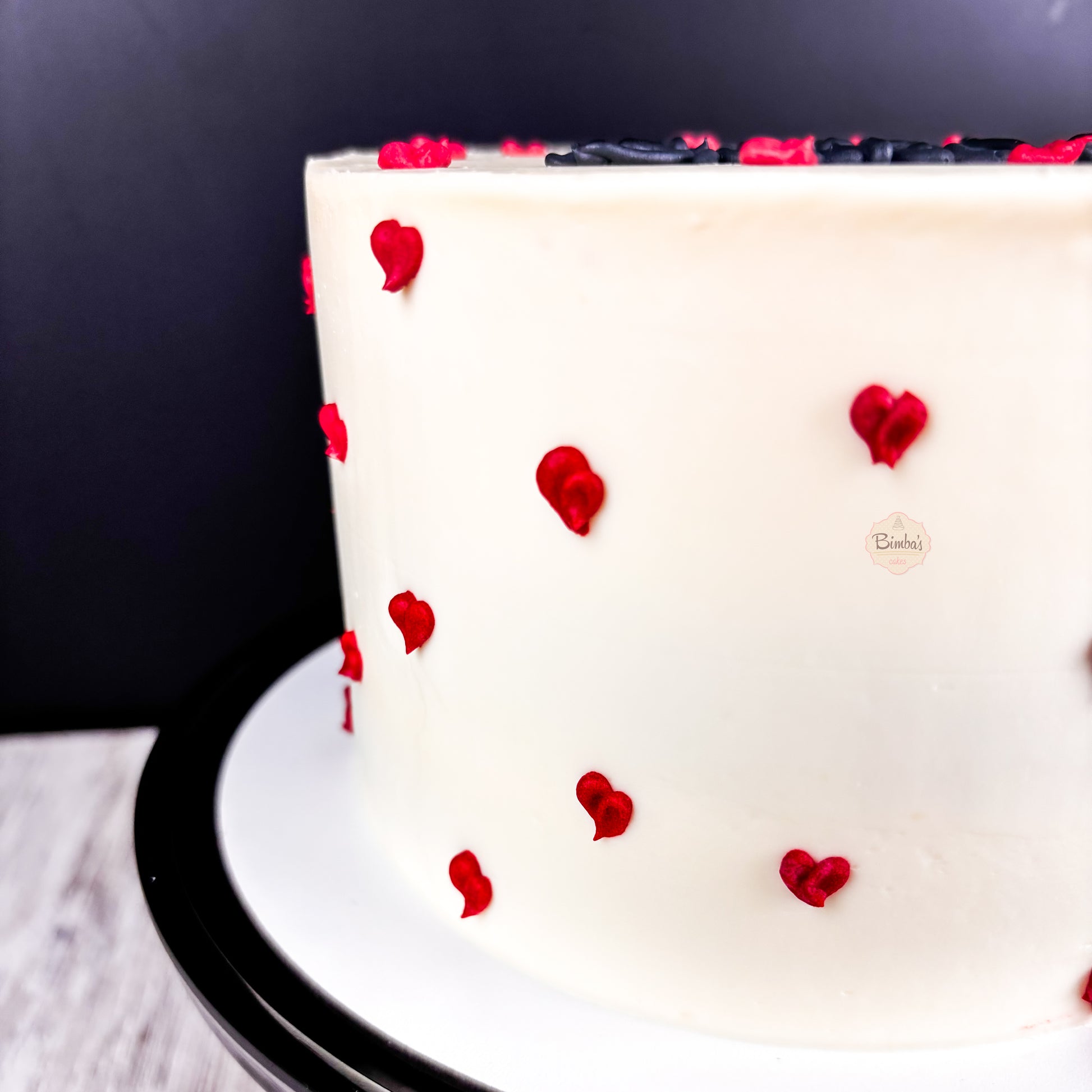 Disfruta de una tarta que combina delicadeza y elegancia, decorada con hermosos corazones que aportan un toque romántico y sofisticado.