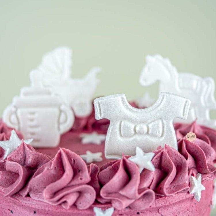 Decoraciones de fondant (body, carrito, biberon, caballito) satinadas