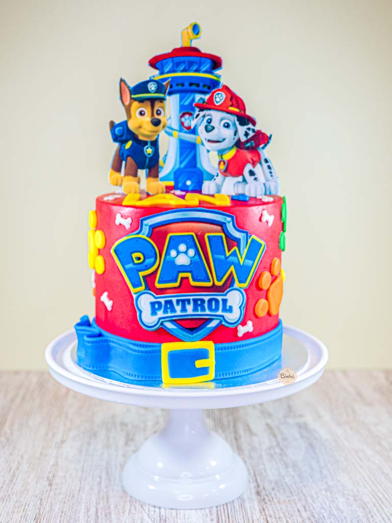 En esta tarta se podrán escoger los 2 cachorros preferidos del cumpleañer@, en papel comestible.