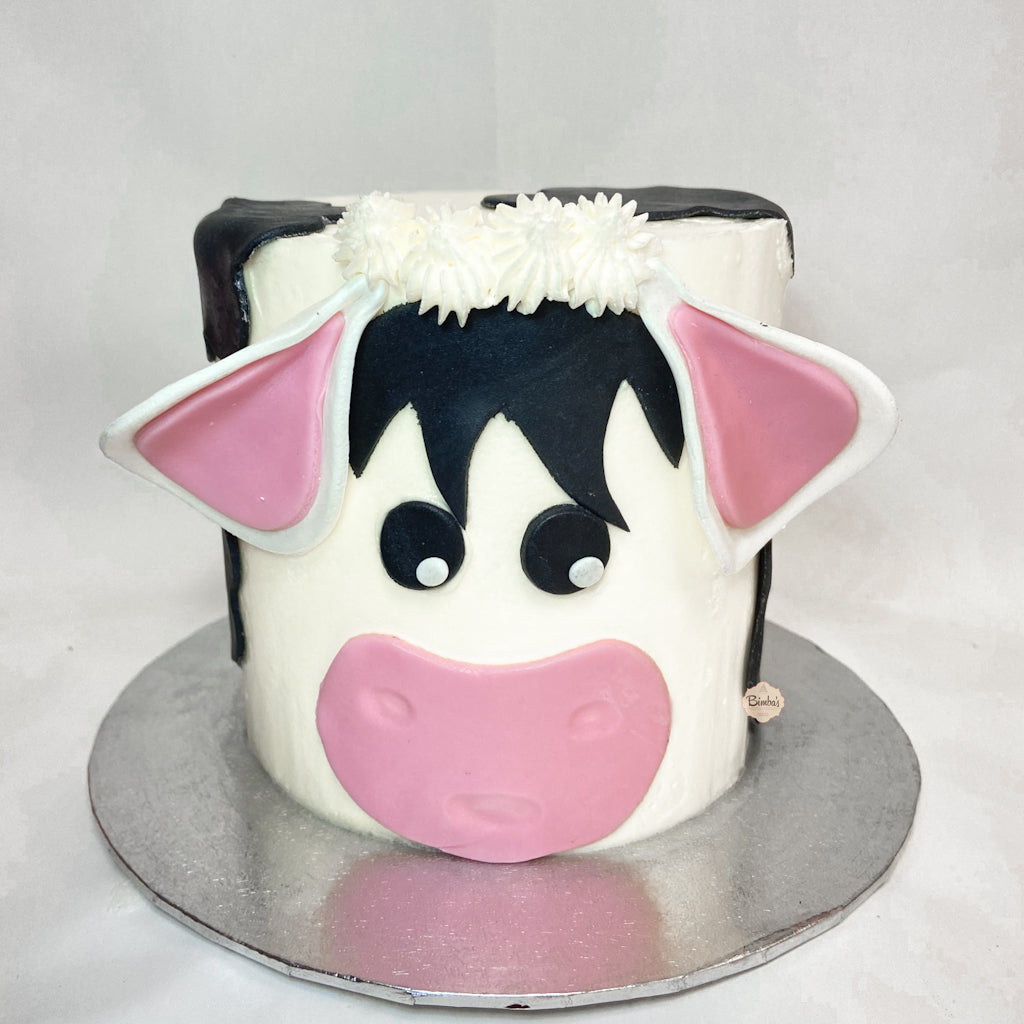 Tarta layer Vaca, rellena de bizcocho de vainilla o chocolate y acabada con crema de chocolate blanco