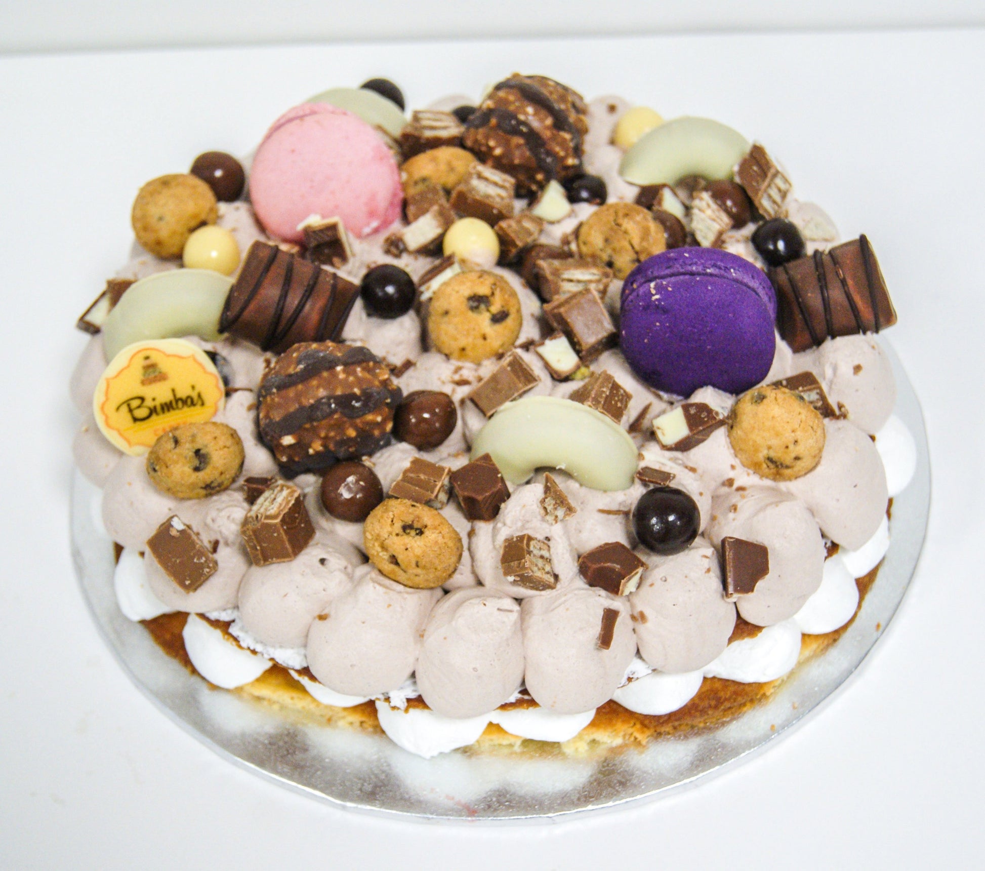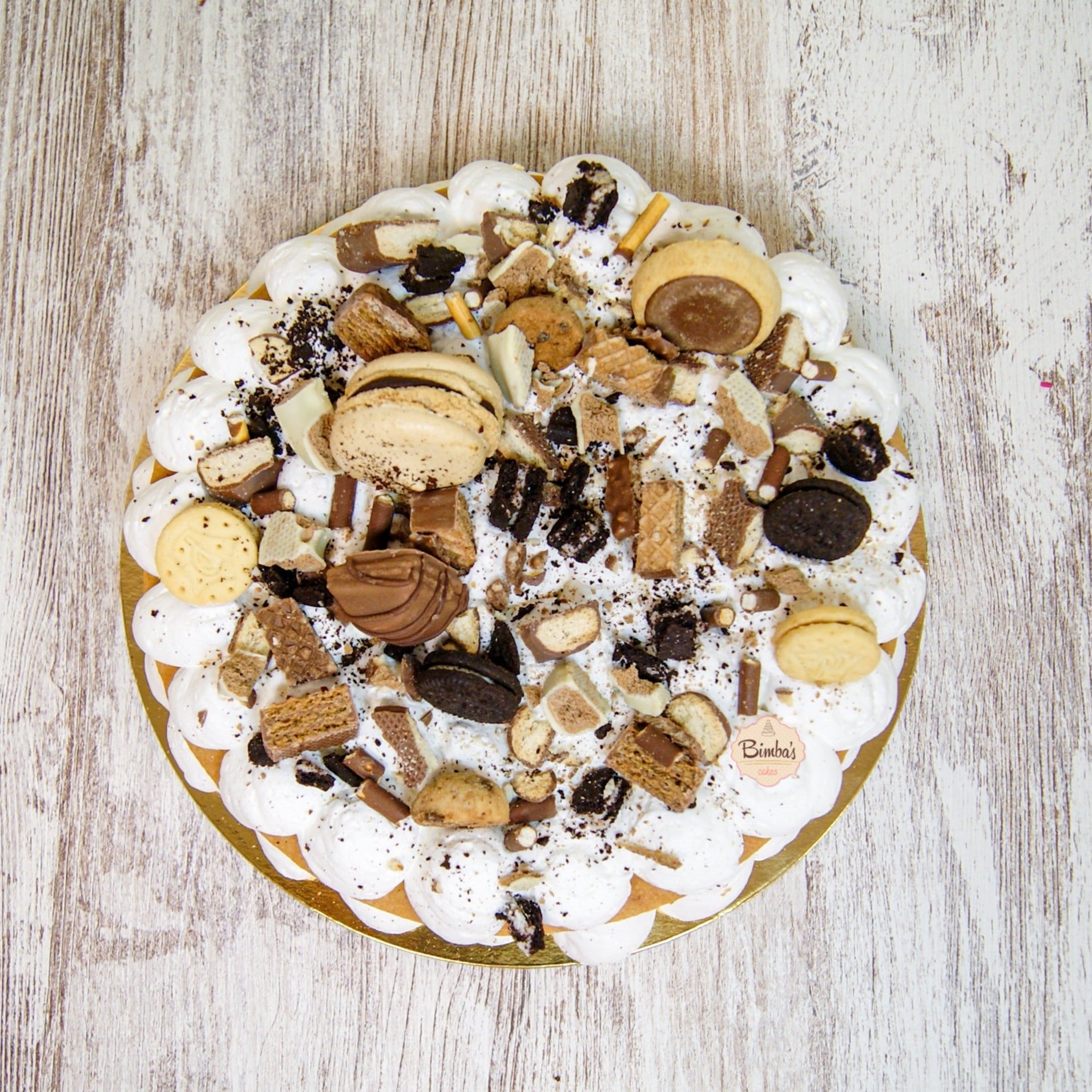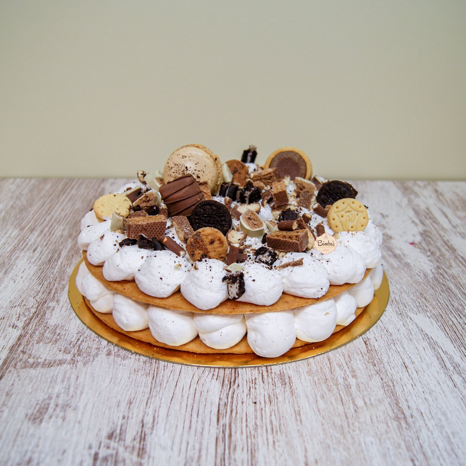 Tarta hecha a base de galleta, rellena de nata o trufa y decorada con frutos rojos o chocolatinas.